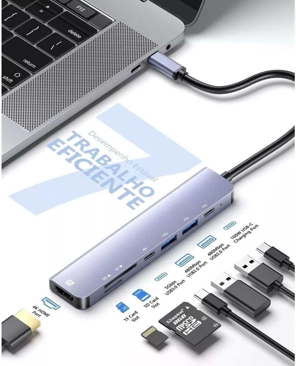 O Adaptador Hub 7 em 1 USB-C Premium é a solução definitiva para quem busca produtividade e praticidade. Com 7 portas integradas, você pode conectar dispositivos variados e desfrutar de uma experiência otimizada para multitarefas. Perfeito para profissionais e entusiastas da tecnologia!
