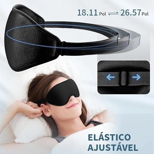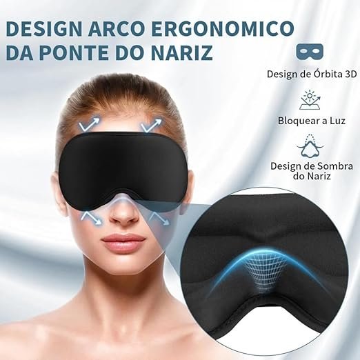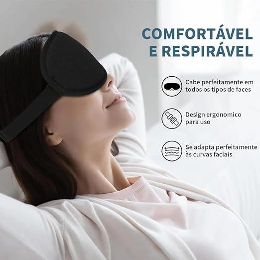 A Máscara de Dormir 3D é feita com materiais confortáveis e respiráveis que se ajustam perfeitamente ao formato do rosto, sem apertar ou incomodar. Seu design 3D eleva o conforto ao proporcionar ajuste ergonômico que elimina qualquer pressão sobre os olhos, tornando-a ideal para uso prolongado durante viagens, cochilos ou noites de sono.