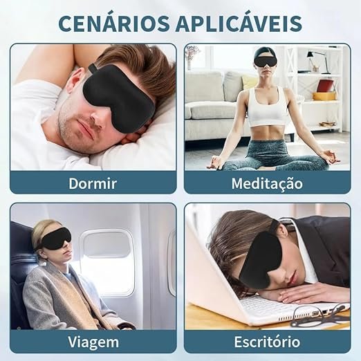 Seja para relaxar antes de um voo longo, meditar ou simplesmente melhorar a qualidade do sono, esta máscara se adapta facilmente ao seu estilo de vida. Compacta e leve, ela é ideal para ser carregada em sua mala ou bolsa, garantindo descanso premium onde quer que você esteja. Um verdadeiro aliado para quem prioriza saúde e bem-estar!
