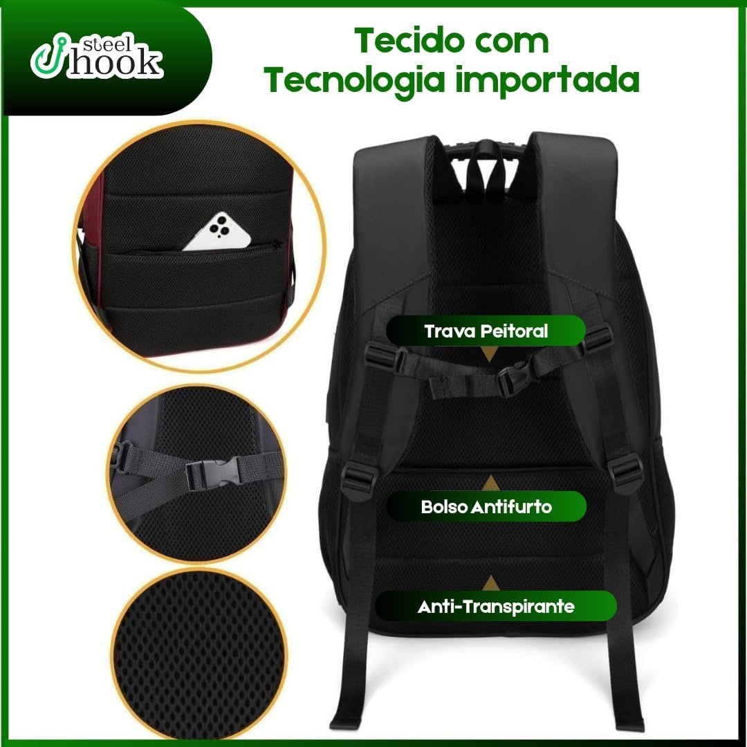 Conecte-se com facilidade! Equipada com saídas USB e para fone de ouvido, essa mochila é perfeita para quem busca praticidade e conectividade enquanto se mantém organizado.